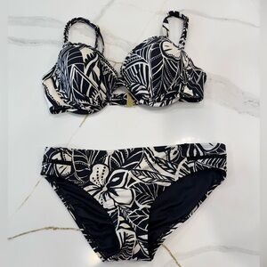 Dive into elegance with the Bleu Rod Beattie bikini set, showcasing a striking black and white floral design. The structured bra-style top and classic bikini bottom offer a perfect blend of style and comfort.