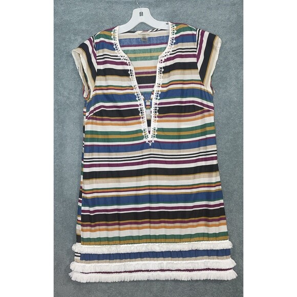 Bleu Rod Beattie Swimwear Womens Medium White Cover Up Stripes Beach Boho