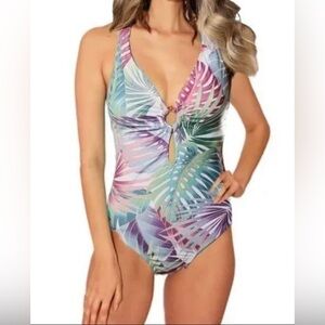 Bleu Rod Beattie Floral Breeze Ring Me Up X-Back one piece Sz8