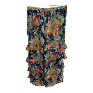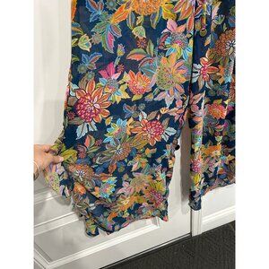 Bleu Rod Beattie Floral Pull On Sheer Pants Multi Sz Medium Ruffle Beach Boho