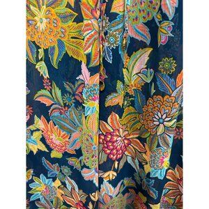 This vibrant floral pants features a beautiful blend of colors and ruffled detailing, offering a stylish and comfortable fit for any wardrobe. Its lightweight fabric and elastic waistband ensure ease of movement, making it a versatile choice for various occasions.