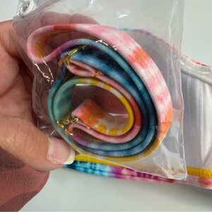 Vibrant bandeau bikini top. Features tie-dye pattern. Strapless design. Perfect for summer.