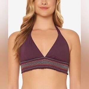 Bleu Rod Beattie NWT Smock it to Ya Embroidered Halter Bikini Top in Aubergine Size 8