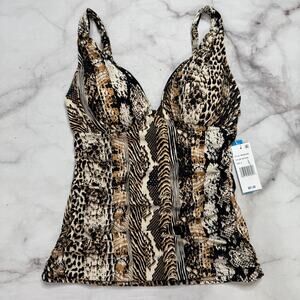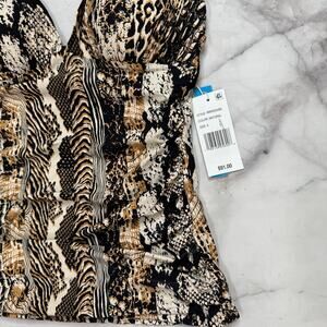 Bleu Rod Beattie Natural Animal Print Halter Bikini Top Size 6 New Brown Ruched