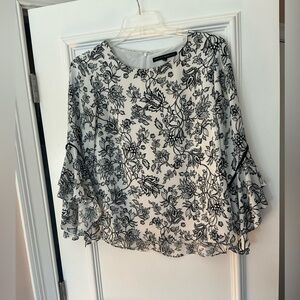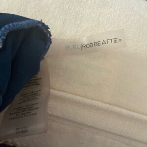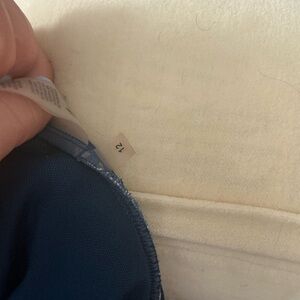 Stylish one-shoulder design. Navy and white stripes. Perfect for beach or pool. Gently worn, in great shape. Right shoulder strap is removable.
