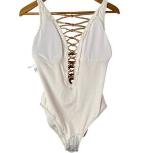 Bleu Rod Beattie Oh So Knotty Lace Down White One Piece Swimsuit
