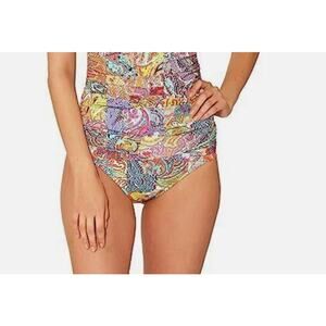 Bleu Rod Beattie Paisley Boho Rainbow Bikini Bottoms Ruched Twist Waistband 12 NWT Retails $59