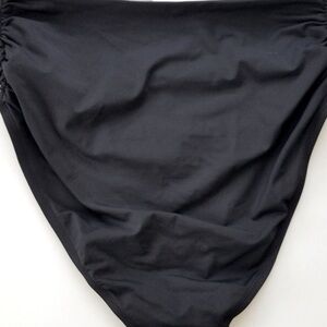 Walk confidently around the pool in these high waisted swim bottoms. Ruching at sides gives these bottoms a sophisticated touch. Made of nylon and spandex.
