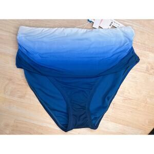 NWT Bleu Rod Beattie Shirred High Waisted Bikini Bottom Bleu Ombre Women's 10