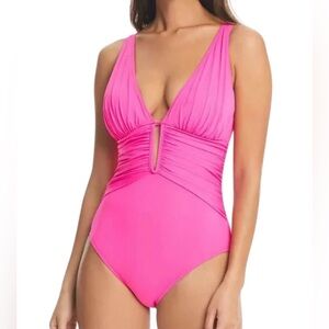 Designed in a sleek solid hue that's perfect for mixing and matching, Bleu by Rod Beattie's swim skirt features a slit at the side for an added sophisticated touch.