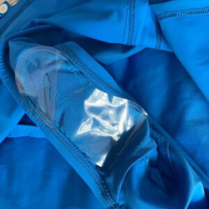 Waist has covered elastic at the top for an instant fit. Skirting has a slit at front left. Hidden swim brief underneath skirt. Mid-rise. Full rear coverage. Front is lined with pique knit and has no additional lining at crotch.