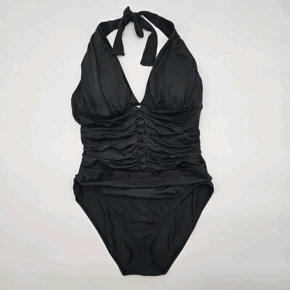 Bleu Rod Beattie Swim Women 10 Black Bathing Suit One Piece Bikini Halter Ruched