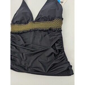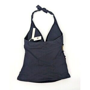 Bleu Rod Beattie Tankini Top Womens 10 Black Halter Metallic Contrast Ruched