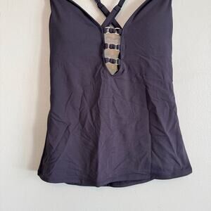 Bleu Rod Beattie Tankini Top Womens 6 Black Lattice Front Strappy Padded Cups