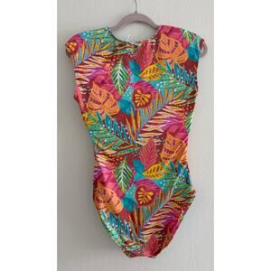 Bleu Rod Beattie one piece swimsuit in colorful pam leaf print. Stretchy, high quality comfy material, size 8. Great, preowned condition!