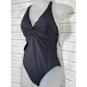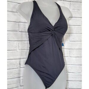 Bleu Rod Beattie Twist & Shout Black One Piece Swimsuit Shirred Size 6 NWT $119