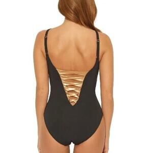 Bleu Rod Beattie Women's Black Twisted-Front One Piece Swimsuit Size 10