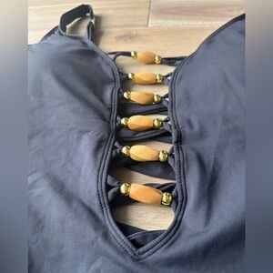 Very Sexy Piece! Wooden beads in front and cut outs in back! Has liner!