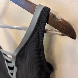 Bleu Rod Beattie lined one piece swimsuit, black with grey trim details, adjustable straps, soft cup