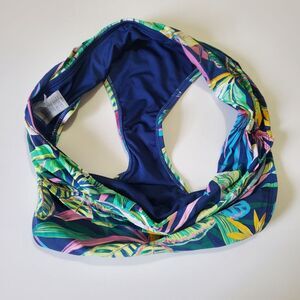 Tropical print with Hawaiian monstera palm leaf pattern in navy blue, acid green, yellow, pink and turquoise pattern colors. Style name is It's a Jungle Out There. Styled like your favorite sarong, these Bleu by Rod Beattie bikini bottoms wrap playfully around your hips, sarong-style waist sits at hips, with full bottom coverage. In excellent condition with no damages, worn and hand-washed once (air dried). Price includes only the bottom part of the set. I do not have the matching top to this bottom anymore.