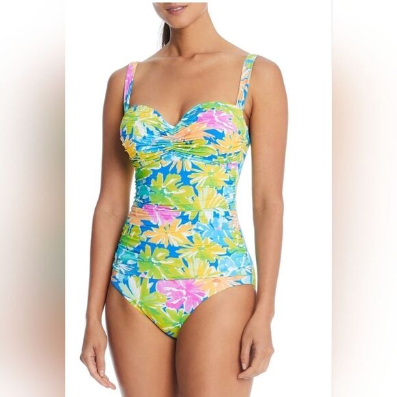 Bleu Rod Beattie Spring It On Shirred Bandeau One Piece Swimsuit NWOT Size 4
