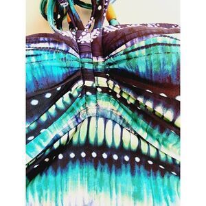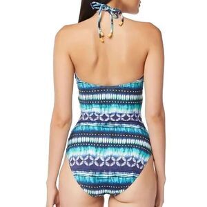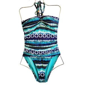 Bleu Rod Beattie One Piece Swimsuit Blue Green Striped Tribal Print Beads 10 New