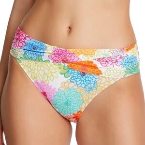 A sarong-style waistband wraps up this fun look from Bleu by Rod Beattie, hipster bikini bottoms in a vibrant floral print.