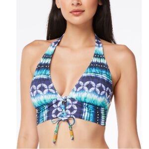 Bleu by Rod Beattie Lace-Up Halter Bikini Top Women's 14 Navy Blue padded swim
