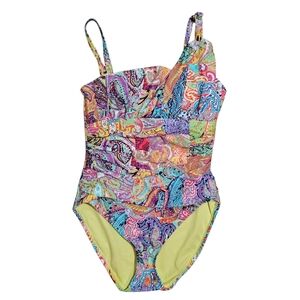 Bleu by Rod Beattie - Paisley Print One Shoulder Swimsuit Womens size 8