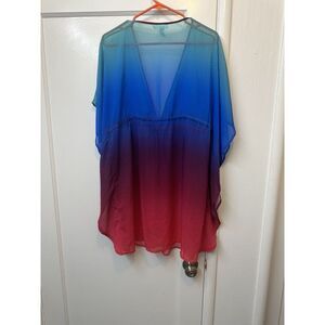 Bleu by Rod Beattie Womens Caftan Swim Cover-Up Medium Multicolor Sheer