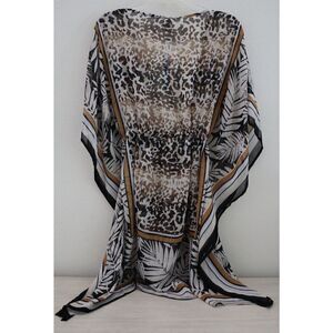 Bleu Rod Beattie RBUO2280 Women Sz L Black Animal Print Caftan Swim Cover Up