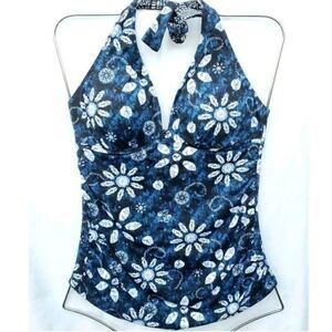 Bleu Rod Beattie Womens Take A Dip Tankini Swimsuit Blue Floral Stretch 6 New