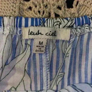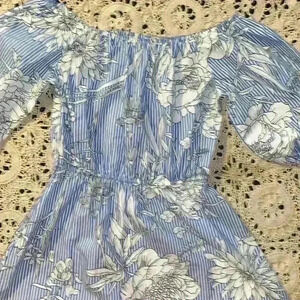 Bleuh Ciel Anthropologie striped/ floral print puff sleeve midi dress. Size medium. In pristine pre loved condition- belt is missing. Measures 19” across the chest & is 40” long.
