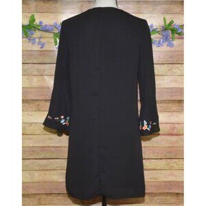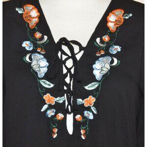 Bleuh Ciel Ladies Black Embroidered Floral Lace Up V-Neck Shift Dress Size M