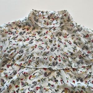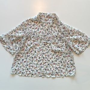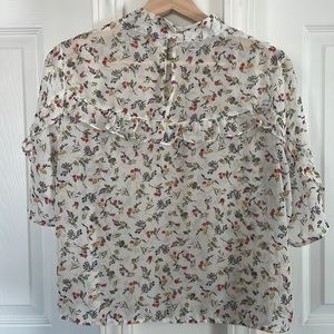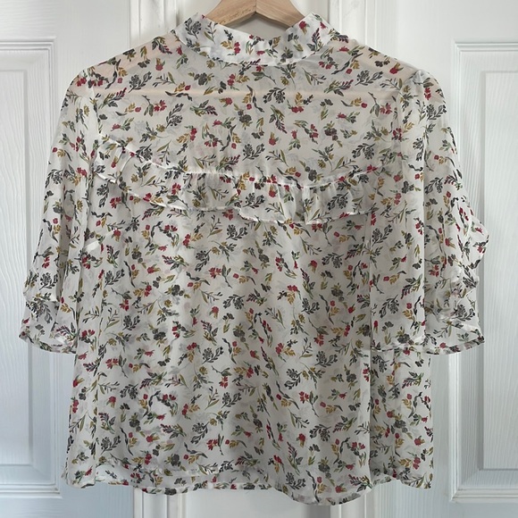 Floral and Ruffle Short Sleeve Blouse by Bleuh ciel