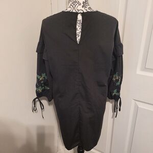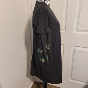 Really nice with decorative sleeves. Made with polyester and cotton materials. Tag says size medium.