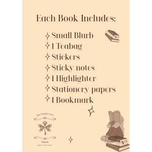 *Bookmark , goodies and a handwritten note with a teasing hint about your book’s vibe.
