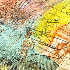 Media: Acrylic Paint, Ink, Collage Papers, Glitter