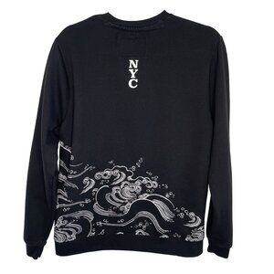 Blind Rooster Black Sweatshirt With Koi Fish & Wave Design, M
