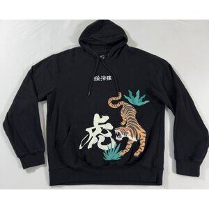 Blind Rooster Tiger Kanji Graphic Hoodie XXL Black Pullover Streetwear Japan Style