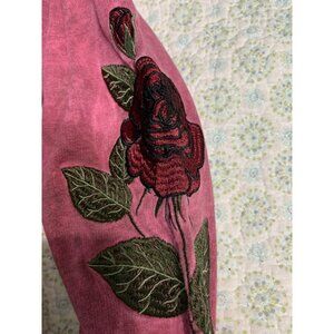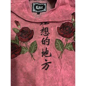 Blind Rooster Womens Sweatshirt Small Pink Embroidered Red Roses Chinese Letters