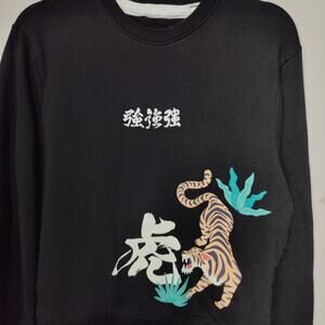 Blind Rooster Women's Sz M Black Tiger Crew Neck Sweatshirt Asian