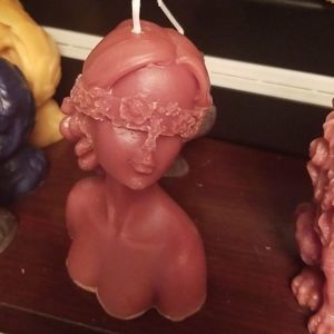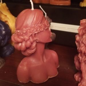 Blind folded Lady bust candle in harvest leaves scent, custom made new soy wax