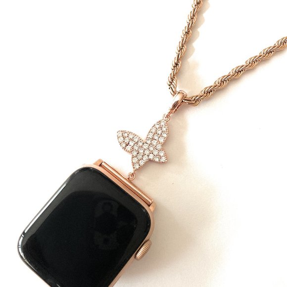 Butterfly Charm Pendant with adapter/connector for Apple Watch & rose gold rope chain necklace.
