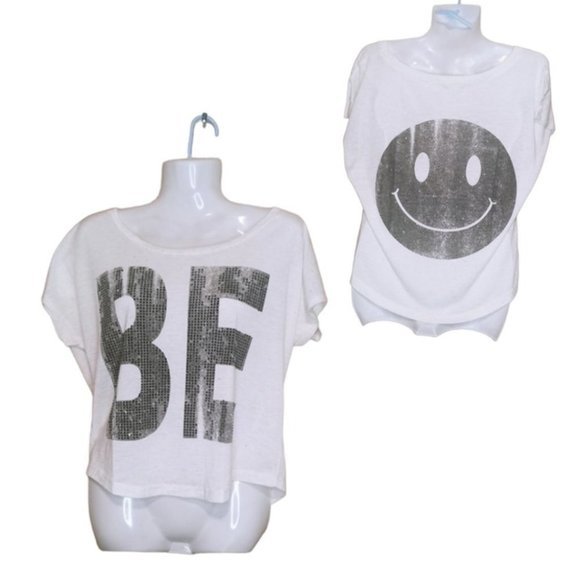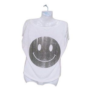 Bling Be Happy Loose Crop Top with Smiley Face Size S