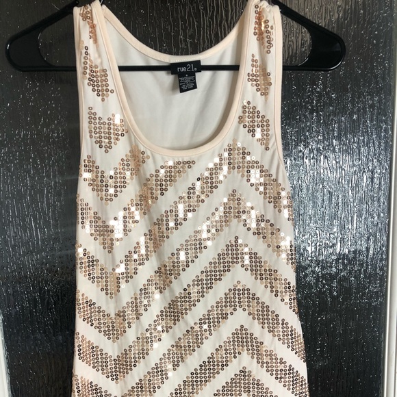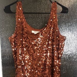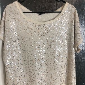 One cream sequin detailed tank! One pinkish nude sequin detailed t-shirt! One brown sequined tank! One off the shoulder sequin top! All never worn!