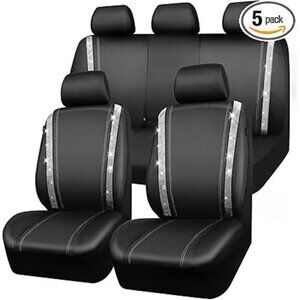 Bling Car Seat Covers Full Set,Shining Rhinestone Diamond Waterproof FauxLeather