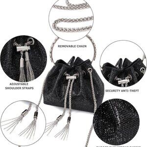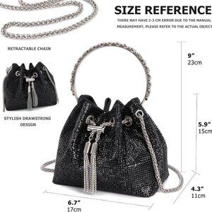 Tassel & Drawstring Design: Protect your bag with a tassel hook & drawstring and tensioning the chain securely. The length of bling purse can be adjust you want, use it as a crossbody bag or shoulder bag; also use metal diamond handle as a clutch purse, handbag.