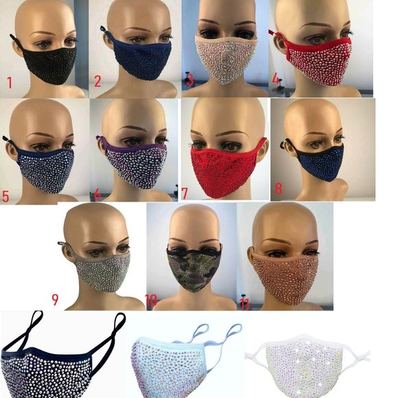 Bling Face Mask With Rhinestone Fashion Mask With Filter Pocket Adjustable