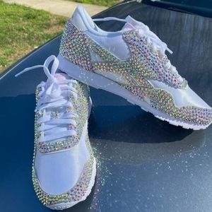 Custom bling out Classic Reebok crystal AB sneakers. Each shoe is hand designed with crystals being placed one by one, making this a time consuming process but the end result is truly a stunning work of art & worth every penny. PLEASE be aware that processing time takes upto 2 weeks & this may vary depending on the shoe & design being done. Sneakers may be shipped without the box if doesn't fit once wrapped. Shoes will be packaged securely. More crystals available. PLEASE NO OFFERS